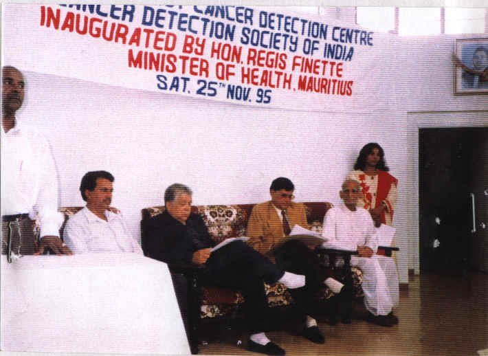 Mauritius Cancer Services were introduced and inaugurated by Mr. Regis Finette Hon'ble Minister of Health in November 1995. |