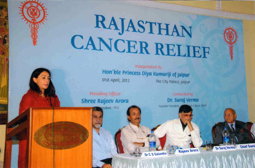 Rajasthan Cancer Relief Introduction Cancer is a dreaded disease. In recent years cancer has not only become a common disease but the accelerating occurrence involving the younger age group & patients report at an advanced stage for treatment is a matter of growing concern all over the world. Rajasthan Cancer Relief ( RCR ) is a compassionate concern commissioned with community contribution & was inaugurated by Hon'ble Princess Diya Kumariji of Jaipur. Shri Rajeev Arora vice president PCC Rajasthan was the Presiding Officer.