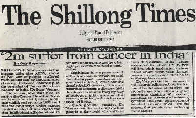 | Shillong Cancer Society as HQ N.E. States as branch of Cancer detection Society. | |||